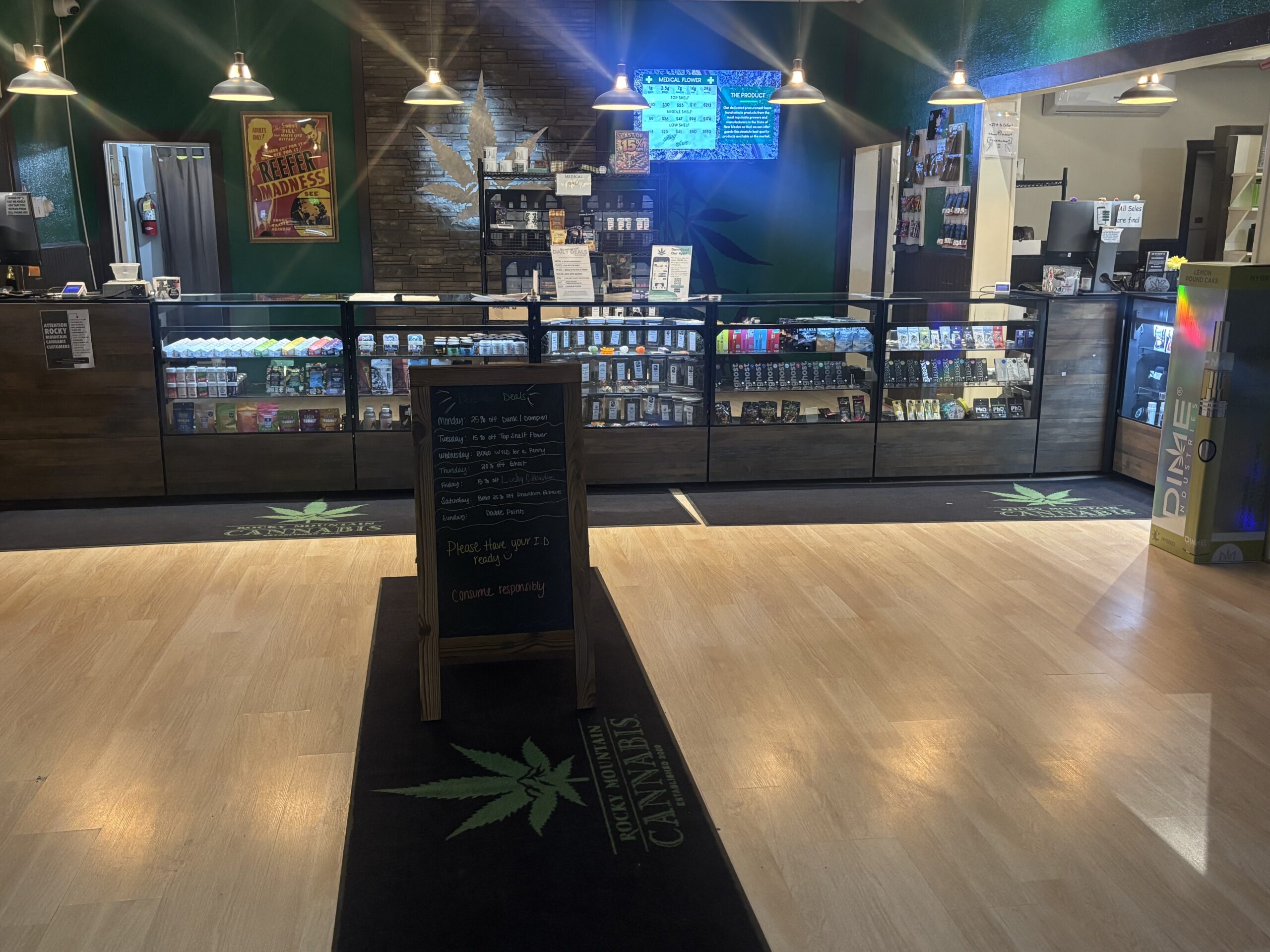 At Rocky Mountain Cannabis, we’re proud to serve the community of Clayton. Our cannabis shop in Clayton is accessible to anybody 21+, and pet-friendly. There is free parking in front of our store and lots of side parking on the street as well.